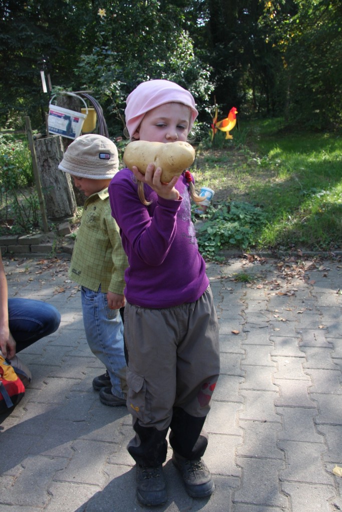 Den Kindern macht die Kartoffelernte viel Spaß.Wer findet die größte Kartoffel und wer traut sich Tiere zu füttern. Schon einige Tage vor der Kartoffelernte ist die Kartoffel das Thema im Kindergarten. Die Kinder erfahren, dass die Wurzel der Kartoffelpflanze gegessen wird.Pommes, Chips, Salat, Brei, unednlich viel wird aus der Kartoffel gemacht. Und gesund ist sie auch. Die Kartoffelernte ist fester Bestandteil im Kindergatenjahr seit fast 10 Jahren. Wir sagen danke für den spannenden Vormittag im Langental.